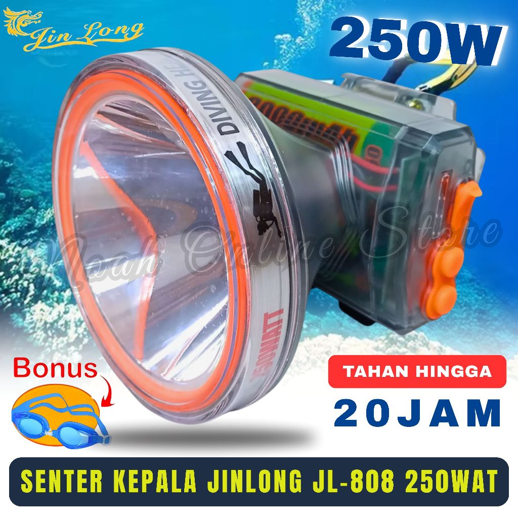 Senter Kepala Selam 300 Watt Jinlong JL-909 Super Terang Bonus Kacamata Renang Baterai 15000mAh Tahan sampai 20 jam 3 Mode Cahaya Senter Kepala Jinlong JL-909