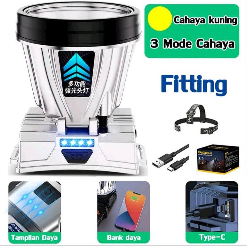SENTER KEPALA 35WATT 50W 80W 100W 150W CHARGE TERANG BATERAI LITHIUM BODY HALUS HEADLAMP CAHAYA KUNING & PUTIH