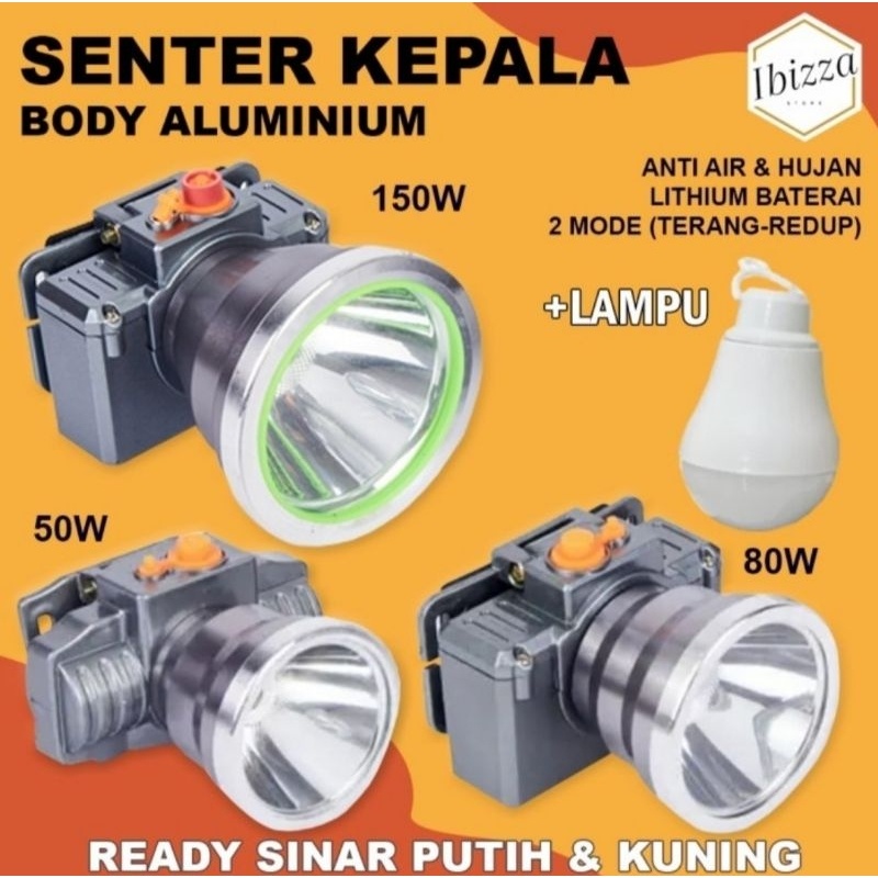 Paket Senter kepala 35w 50w 80w 150w Putih / Kuning Paket Lampu dop emergenzy body besar / kecil Head lamp super terang Harga Grosir murah JMS