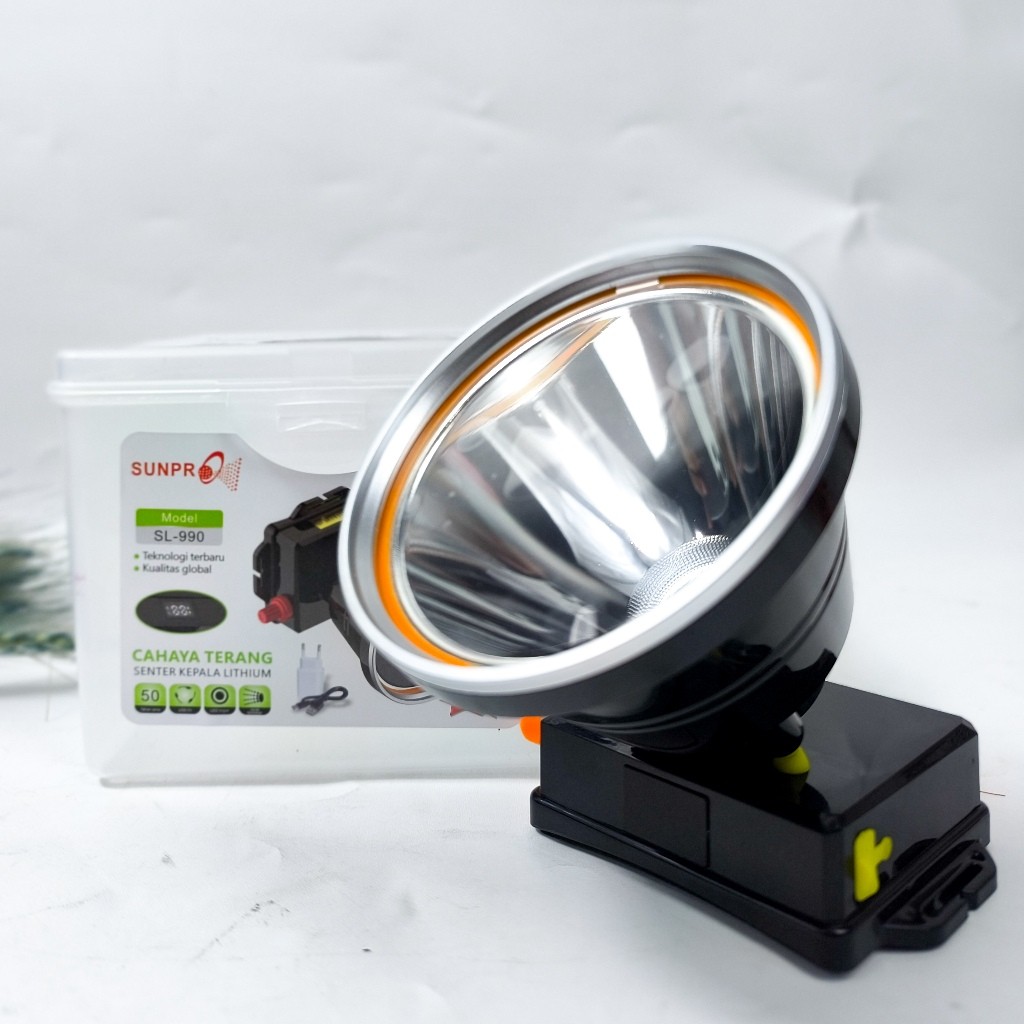 Senter Kepala SUNPRO SL-990 -150 Watt LED Super Tahan Lama 50 Jam Battery 7.800mAh USB 5Volt Cahaya Terang Headlamp Waterproof