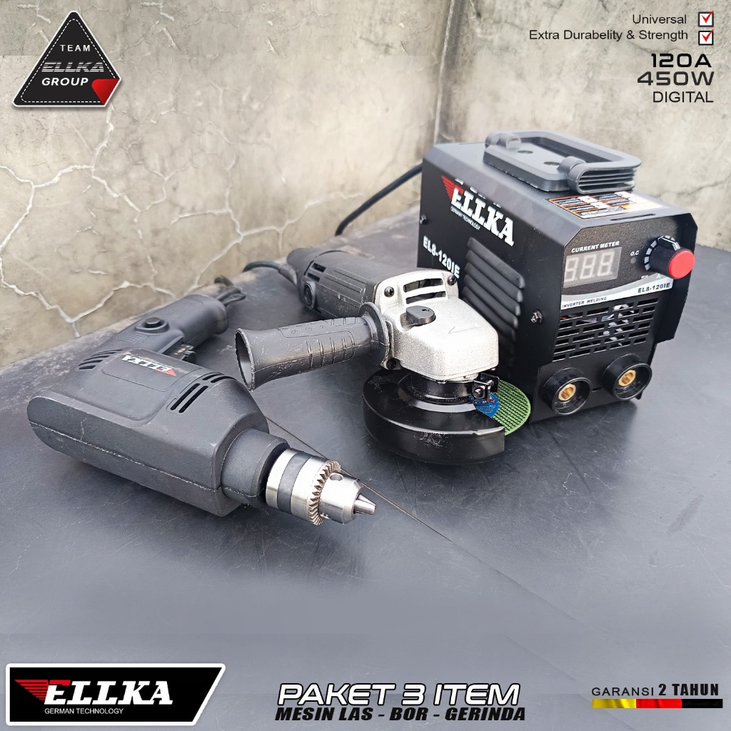 PAKET Mesin Las ELLKA Bor Set 10mm Gerinda Mesin Las Inverter MMA 130A 380 watt Mesin las listrik Mesin trafo las