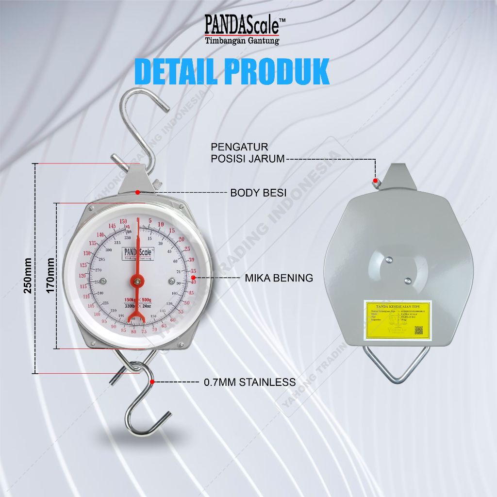 PANDA SCALE Timbangan Gantung Jarum Manual Timbangan Ayam Buah Sayur 25kg 50kg 100kg 150kg