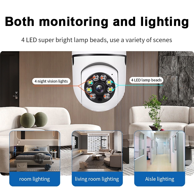 CCTV Camera V380 Pro IP Camera CCTV Indoor Wifi Lamp 360° Wide 1080P HD Convenient Installation PTZ & Memory Card