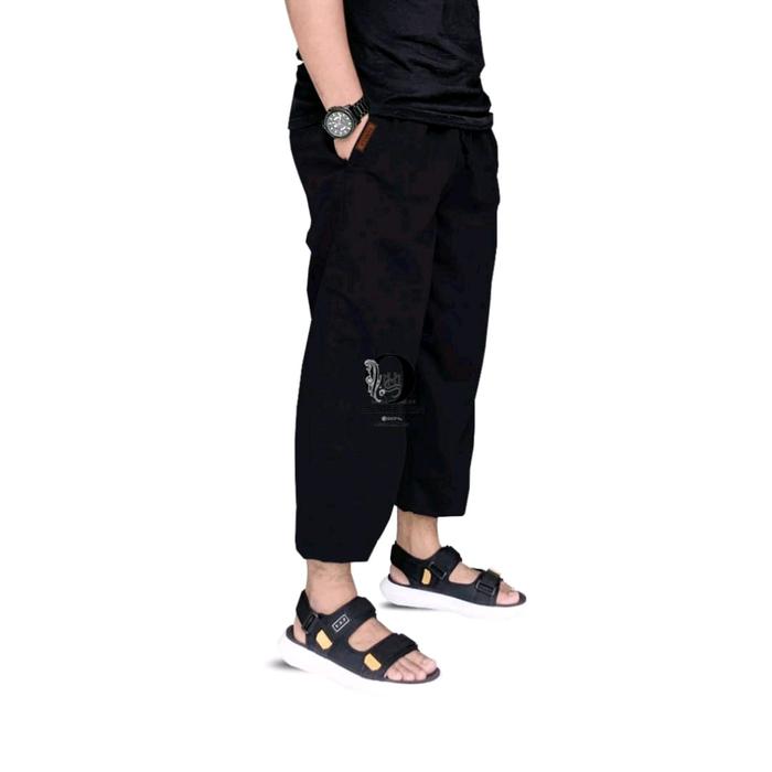 Celana Sirwal Pria Dewasa Panjang Katun Hitam Navy Basic Kerja Nyaman - Cotton Drill TR - Chino, Formal - hitam, M