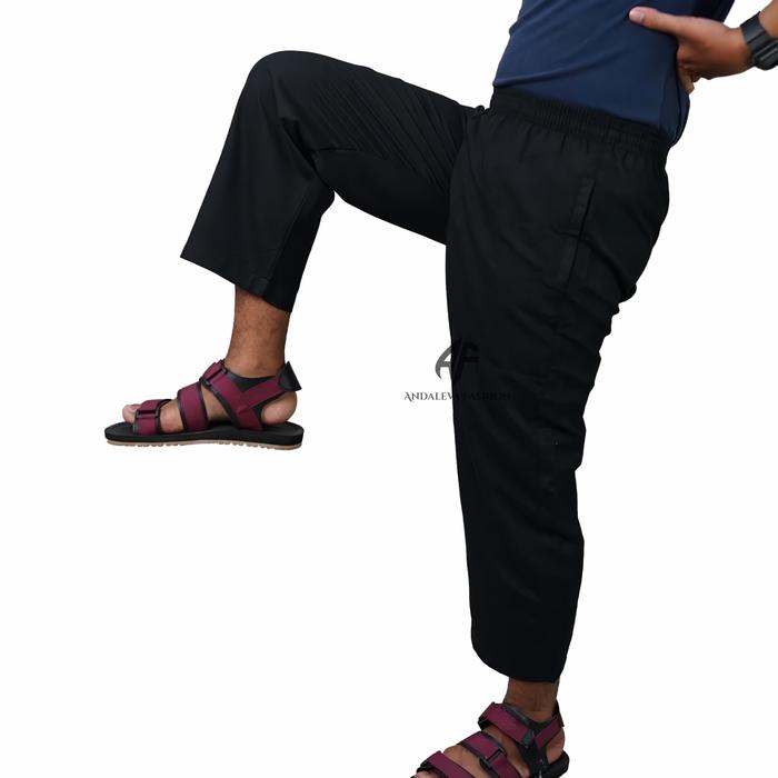 Celana Sirwal Panjang Pria Cowok Remaja dewasa Casual Saku Kiri Kanan Nyaman Katun Polymicro Hitam - Hitam, M