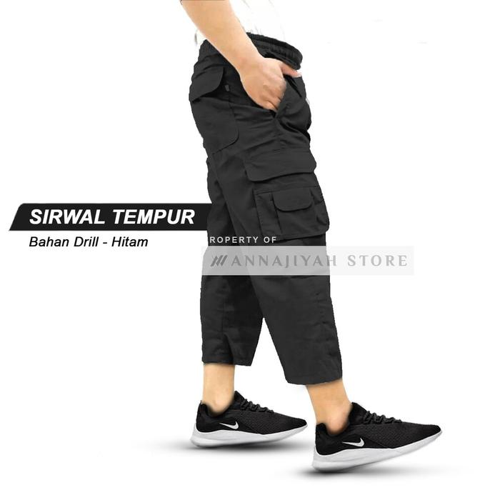 Celana Sirwal TEMPUR ANNAJIYAH Celana Cargo dan Outdoor Muslim Ikhwan Laa Isbal - HITAM, M