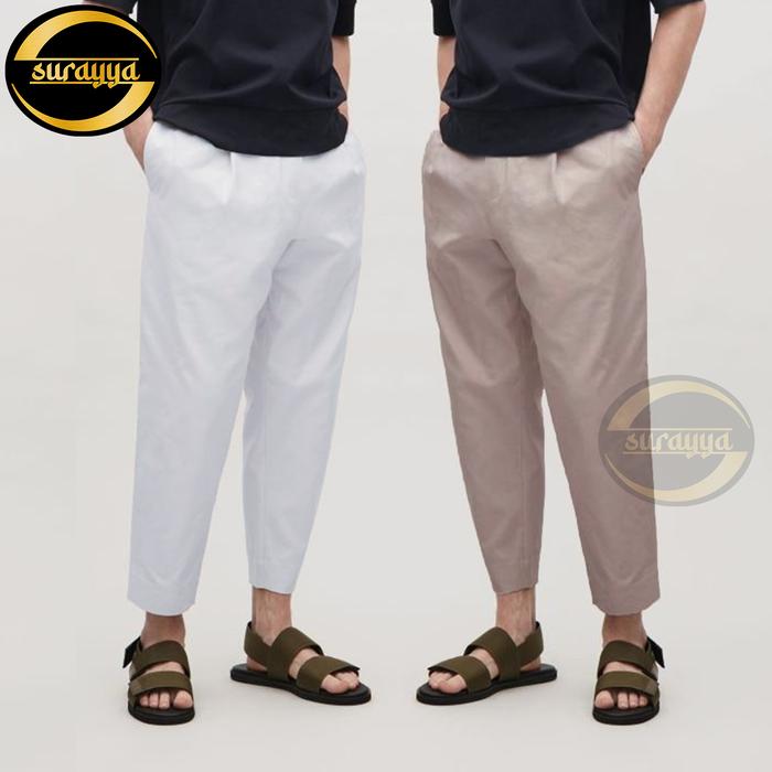 Celana sirwal pria dewasa saku sleting bahan katun soft - PUTIH, M