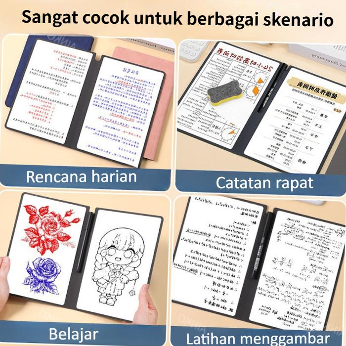 Papan Tulis Portable A5 Whiteboard Notebook PU Leather with Pen Draf buku Notepad
