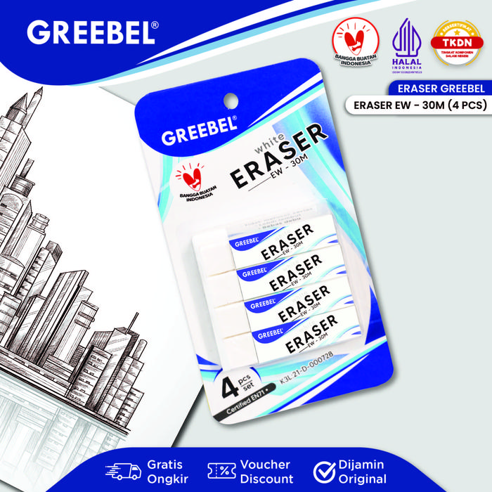 GREEBEL Penghapus Hapusan Eraser EW-30M Penghapus Pensil Setip