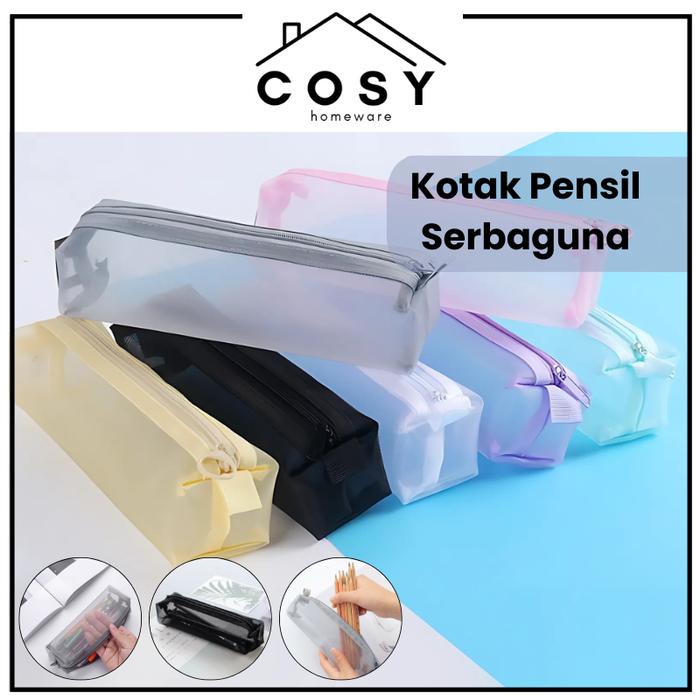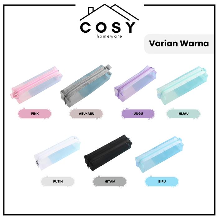 COSY Kotak Pensil Nylon Transparan Tempat Stationery Jaring Resleting Estetik Banyak Warna Tempat