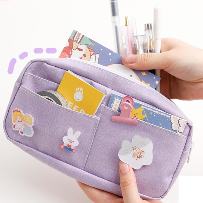 TOPER Kotak Tempat Pensil Pencil Case Kain Kanvas Canvas Lucu Kapastitas Besar FREE 1 Pin Bross