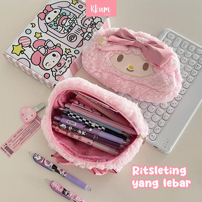 Kotak Pensil Fluffy Cute Pink Pencil Case Large Kawaii Stationery School Supplies
