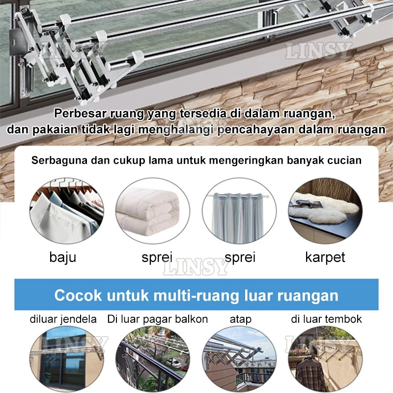 Jemuran Baju Dinding Stainless Steel Jemuran Dinding Lipat 200/180/150/120/100CM Anti Karat