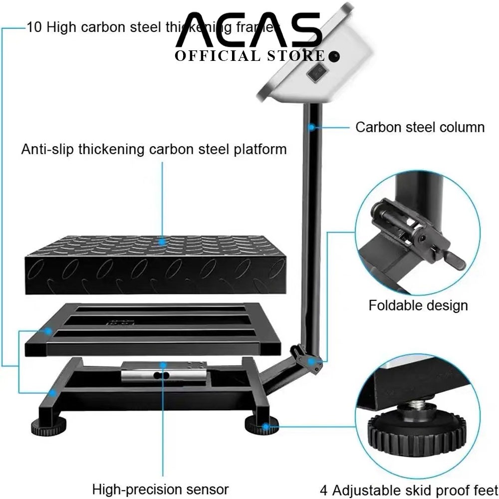 ACAS TCS - 150 kg 200 kg 300 kg Timbangan Duduk Digital Single Display Stainless Steel Pagar Lipat Sembako Laundry Buah Barang Ekspedisi Beras