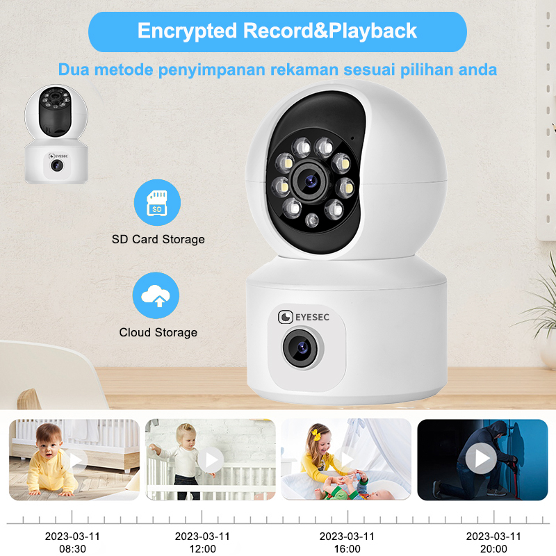 EYESEC CCTV Indoor WiFi 8MP Dual Lens IP Camera 360° PTZ Kamera HP Jarak Jauh Garansi 1 Tahun