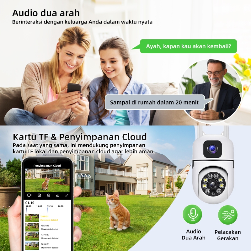 CCTV WiFi Dual Lensa Outdoor 1080P Full HD 1 Kamera Ganti 2 Pantau Lewat HP Night Vision Tahan Hujan