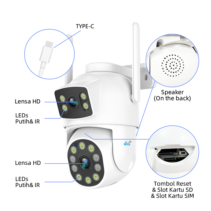 Franwell 4G CCTV Outdoor Dual Lens | 1080P Night Vision | Audio Dua Arah | Gratis SIM | Tahan Hujan