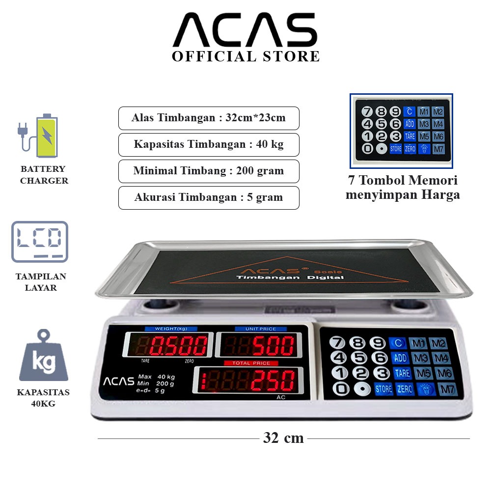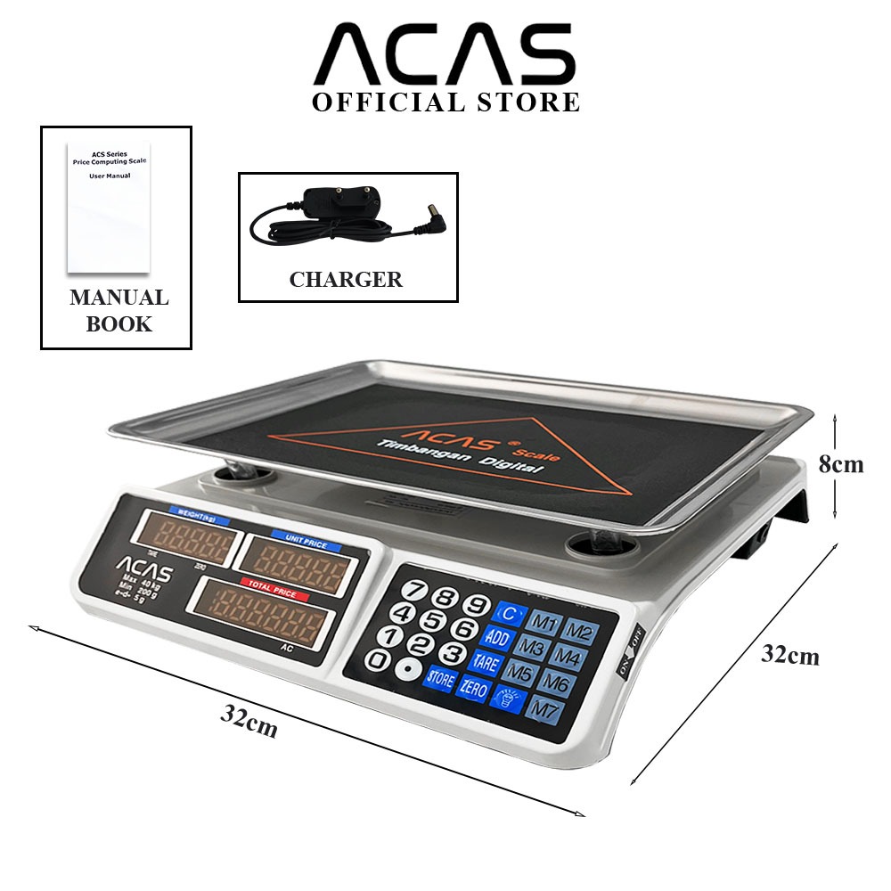ACAS Timbangan Duduk Digital Alas Hitam 40Kg / 200Gr Timbangan Digital Double Display Laundry Sayur Buah