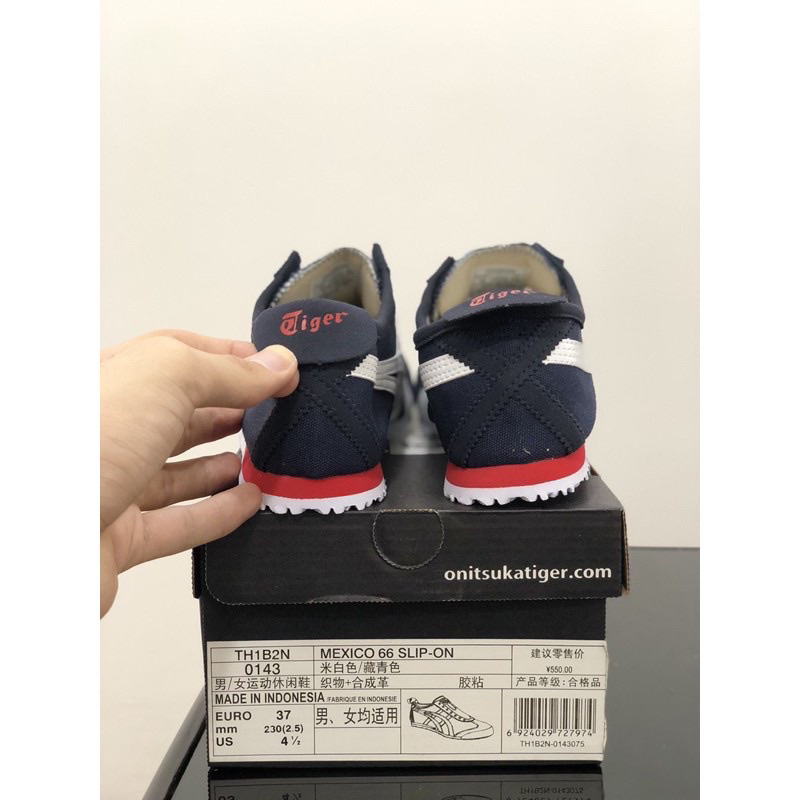 Sepatu Onitsuka Slip On Kanvas Navy White Red