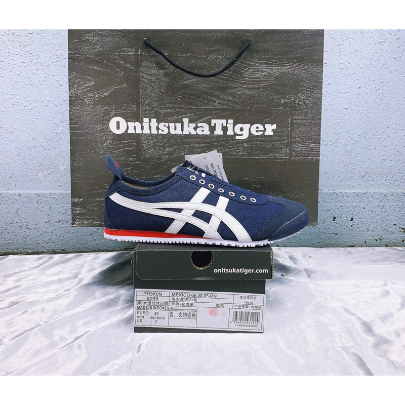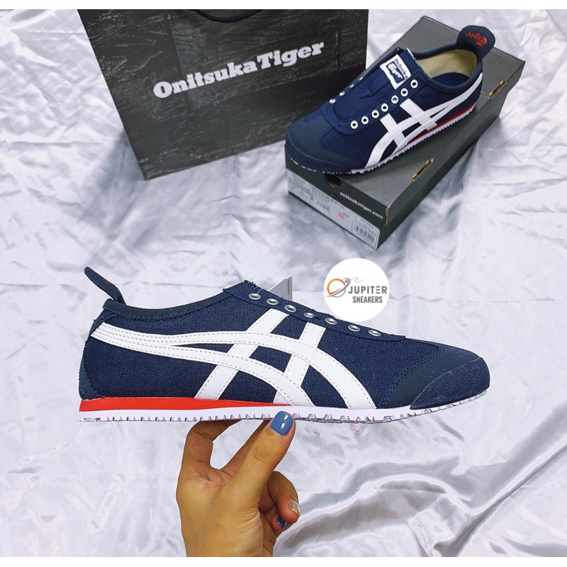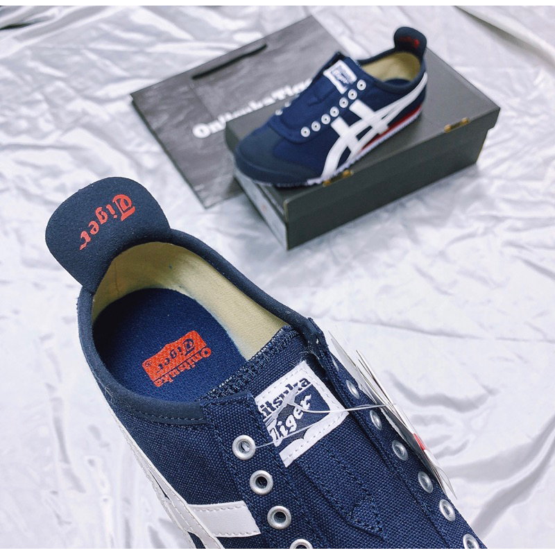 Promo Sepatu #Onitsuka Tiger Slip-On Navy White Red •Free Paperbaq dan kaos kaki•