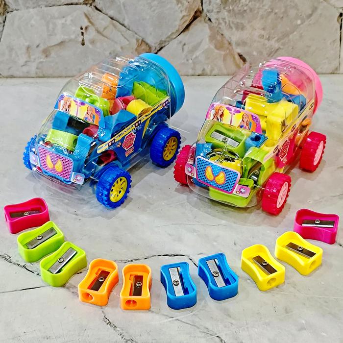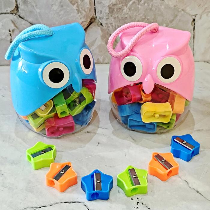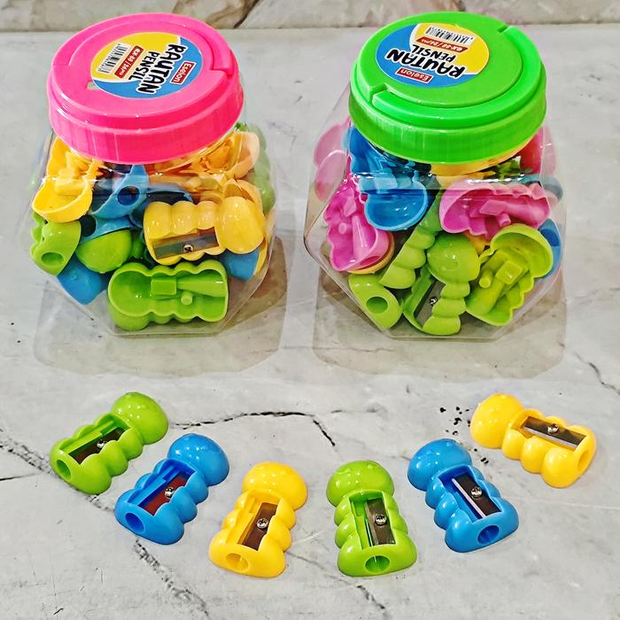 Azka Stationery SATU POT ( 24 PCS ) Serutan Ongotan Rautan Pensil Toples Motif Karakter Lucu