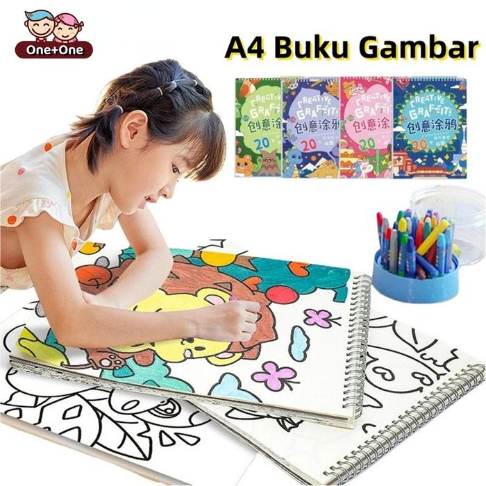 One+One A4 Buku Gambar Mewarnai Anak Buku Grafiti Anak Siswa TK SD Belajar Mewarnai Sketchbook