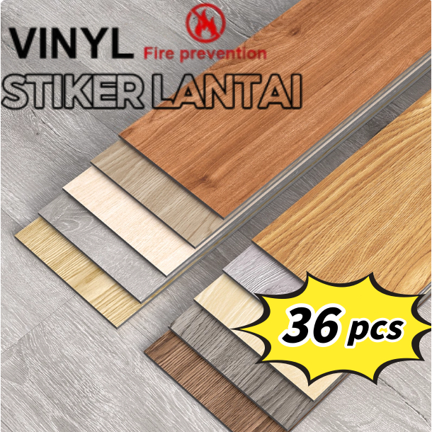 Vinyl Stiker Lantai Siv 1 Box (36 Pcs) Vinil Motif Kayu Pvc Floor Sticker Ubin Berkualitas Premium 91.4cmX15.2cmX1.2mm