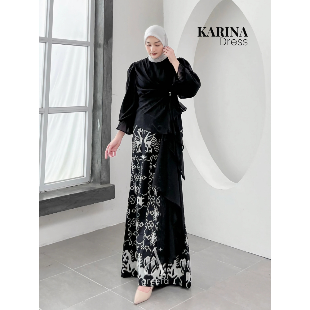 Areefa - Gamis Dress Tenun Etnik Kombinasi Ceruty Premium Wanita Remaja Pesta Mewah Kekinian Terbaru