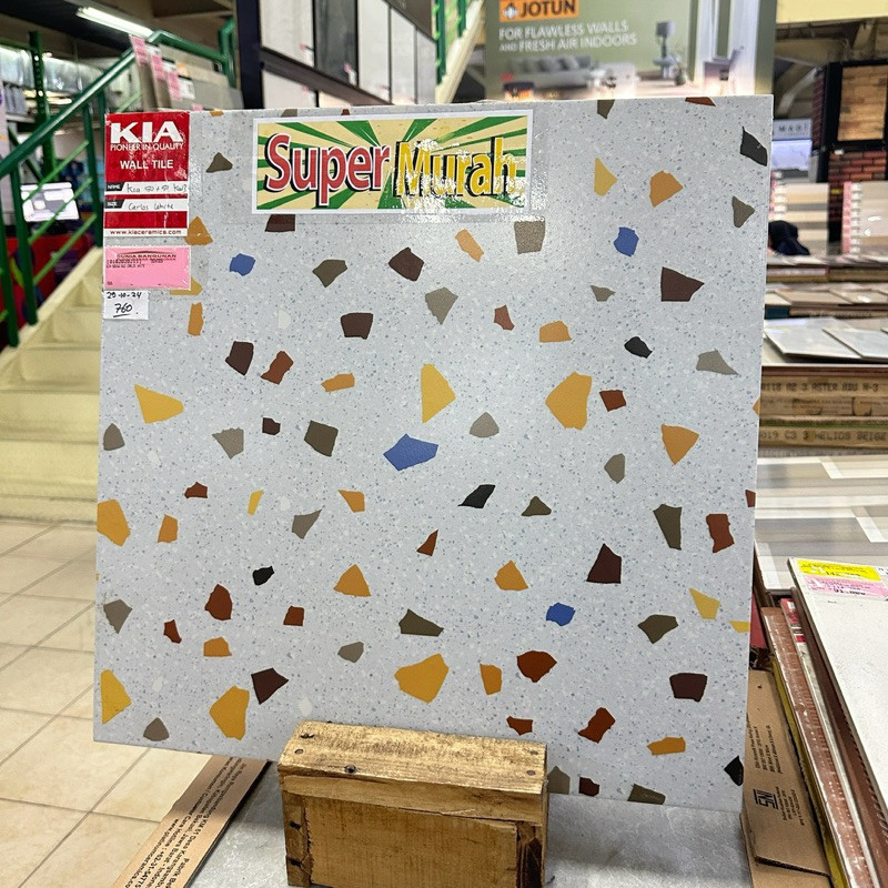 Keramik 50x50 Terazzo KIA Carlos White / Keramik Lantai Doff