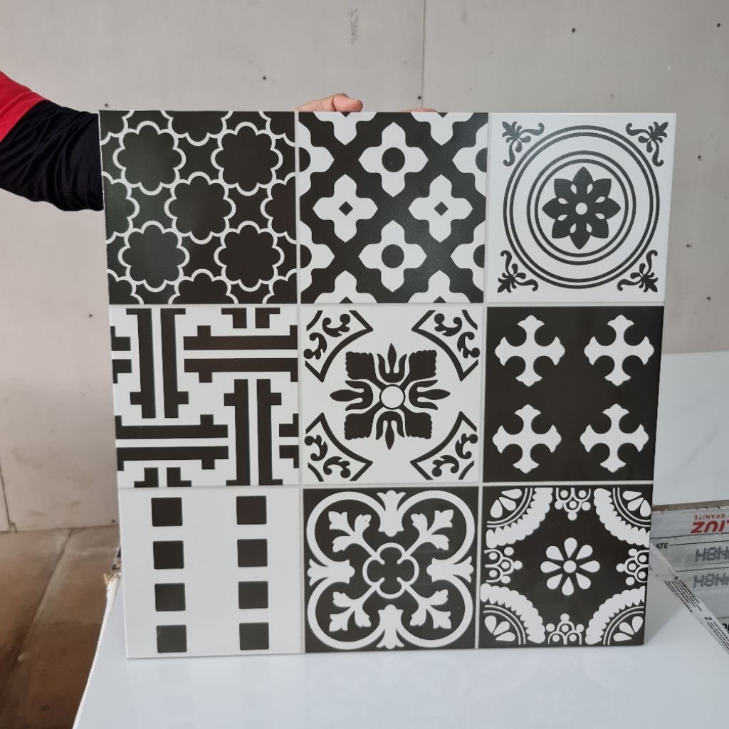 keramik 50x50/keramik batik/keramik hitam putih/keramik teras dop satin/keramik cutting/keramik pola/keramik dinding dap
