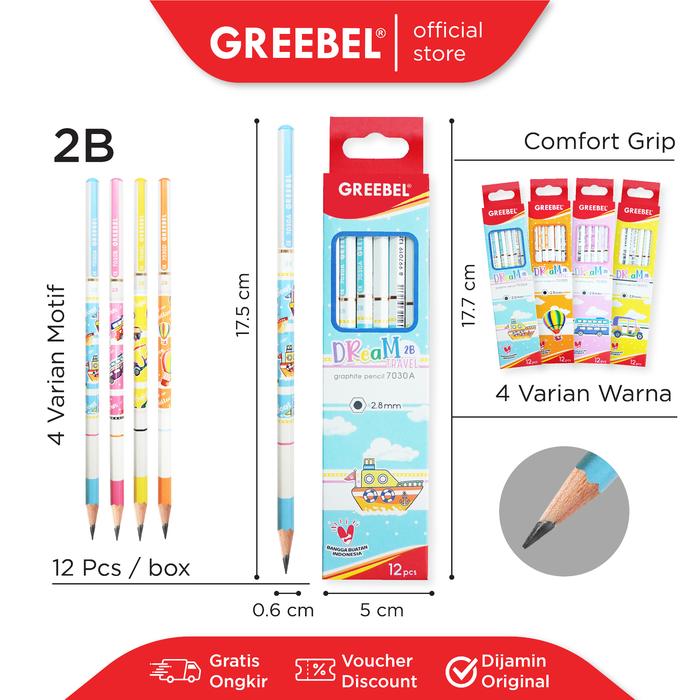 GREEBEL Pensil Pencil 2B Dream 7030 Pensil Kayu Lucu Karakter Pastel Pensil Ujian