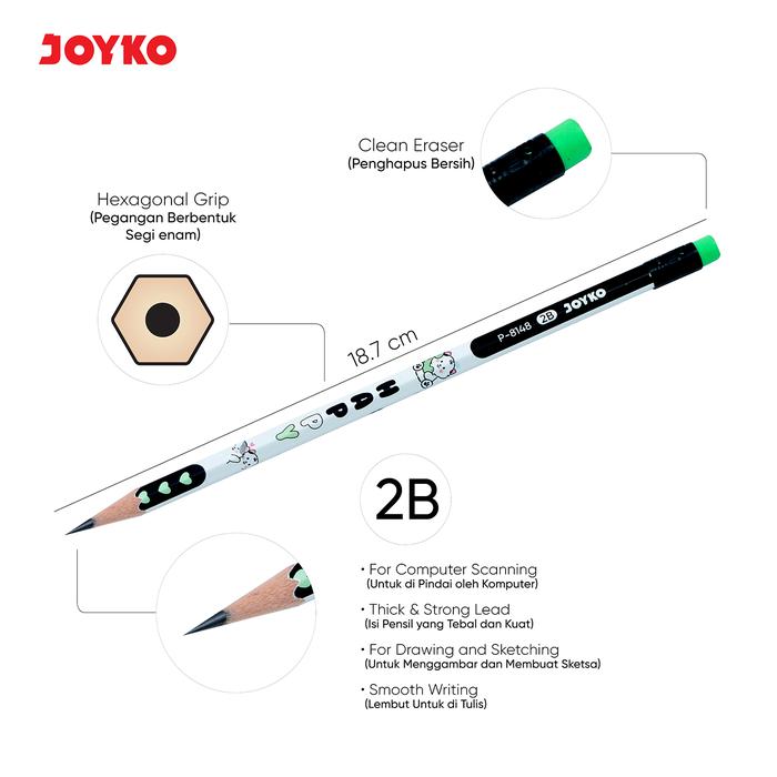 JOYKO PENCIL PENSIL KAYU JOYKO 2B MOTIF ANAK LUCU HAPPY CAT UJIAN P-8148 LUSIN BOX 12PCS