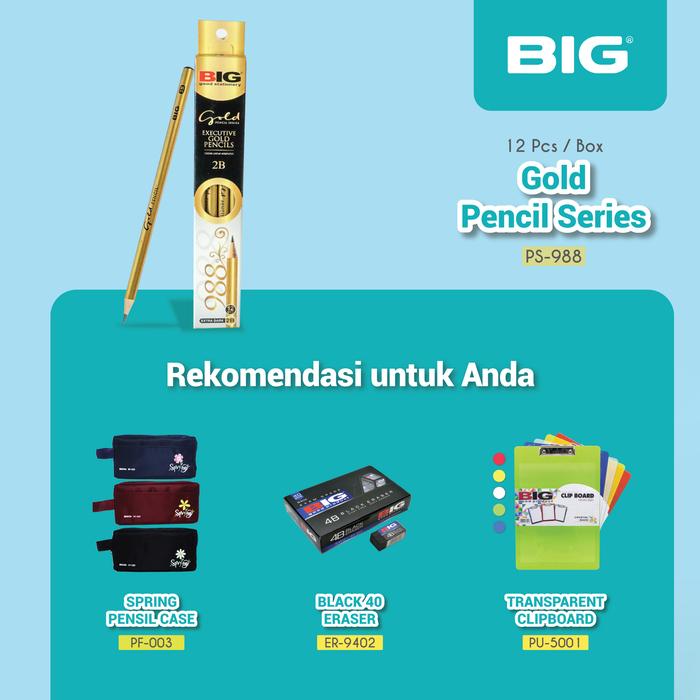 BIG Pensil 2B Kayu Standar Ujian Komputer Gold Lebih Elegan Graphite Pencil Extra Dark Tanpa Raut