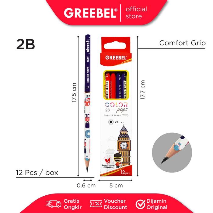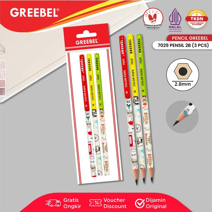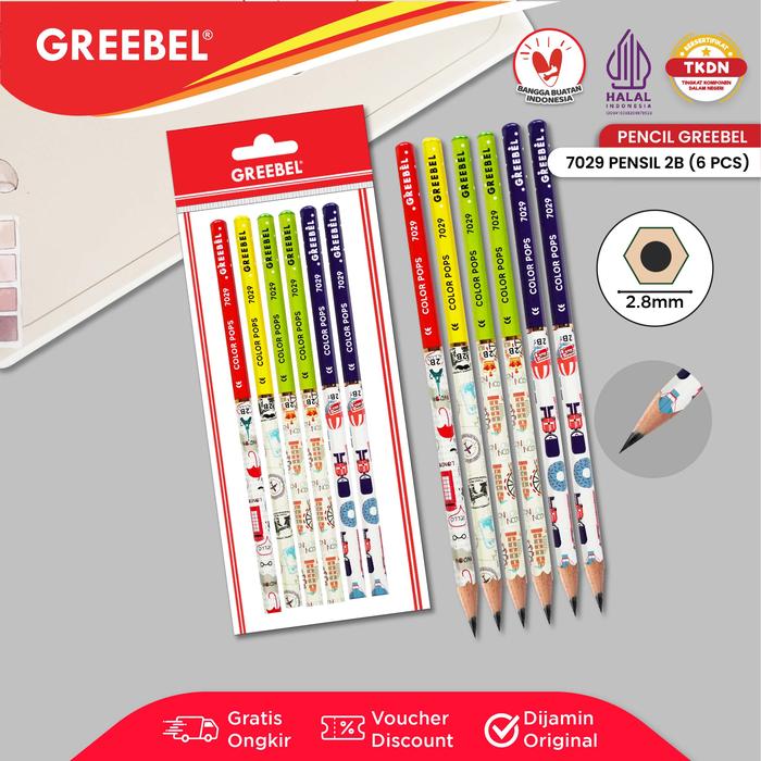 GREEBEL Pensil kayu 2B 7029 COLOR POP/Pencil Kayu Karakter/Grafit/Graphite tdk beracun utk ujian