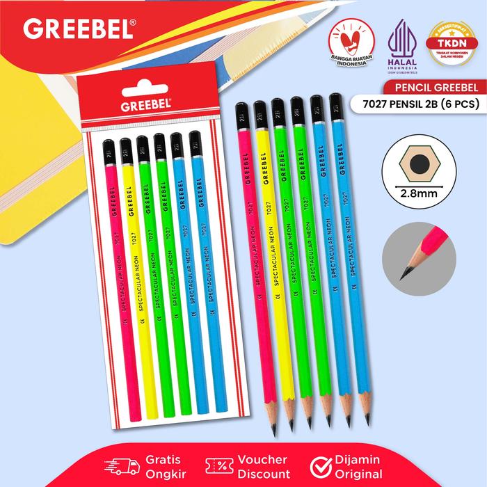 GREEBEL Pensil Tulis 2B 7027 Neon Pensil Kayu Ujian Pencil Grafit Graphite Pensil Gambar