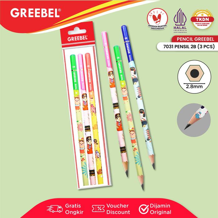 GREEBEL Pensil Pencil 2B Culture 7031 Pensil Kayu Lucu Karakter Pastel Pensil Ujian