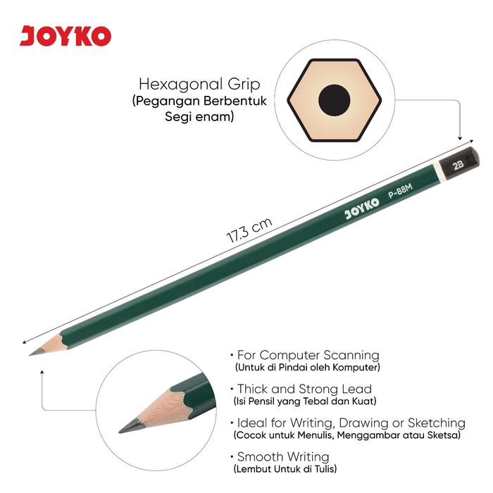 1kotak /12pcs Pensil 2B JOYKO P-88M Untuk Komputer