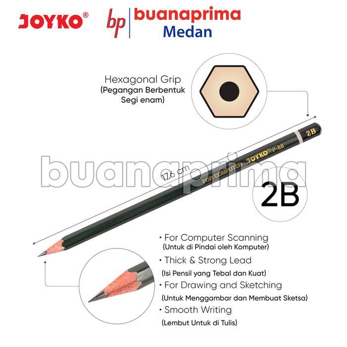 Pensil JOYKO 2B P-88 Hijau 1 Box isi 12 pcs Pencil Kayu Komputer P 88