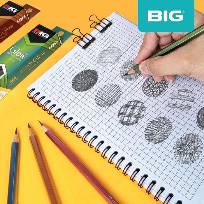 BIG Pensil 2B Kayu Metallic Glow Graphite Pencil Standar Ujian Extra Dark PS-966 12 Pcs
