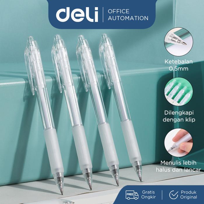 Special Price Deli Gel Pen Pulpen Gel Retractable Tinta Hitam 0.5mm A057B-01 Alat Putih Transparan