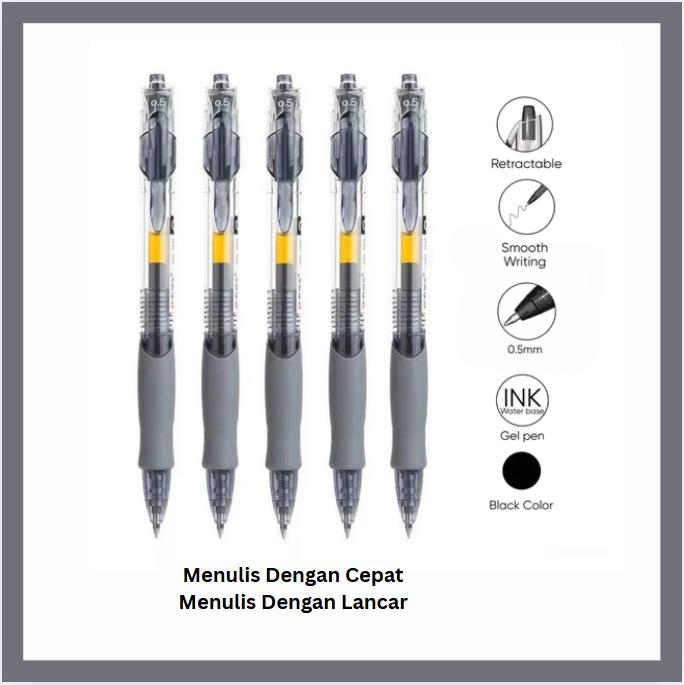 12-50 Pulpen Gel Retractable Pena Gel 0.5 MM GP-265 Q Gel Pena Gel Hitam- Stationery