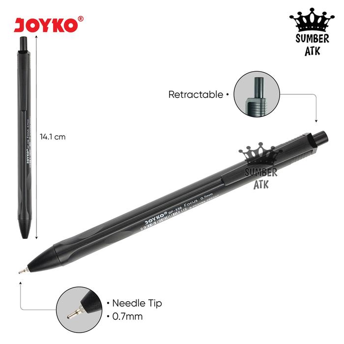 Ball Pen Pulpen Pena Joyko BP-338 Focus 0.7 mm Ballpen Triangular Grip 1 Lusin 12 pcs