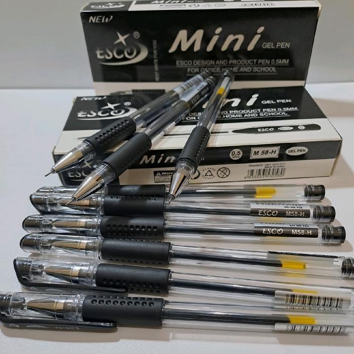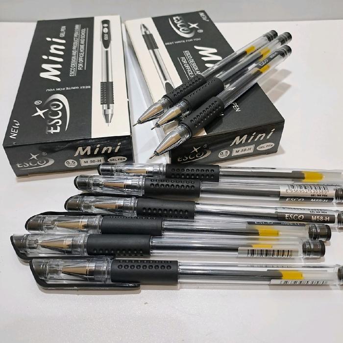 Esco Mini Pulpen Gel 0.5 mm Hitam 12 pcs & 24 pcs Tinta Jelas Tidak Gampang Macet Desain Menarik