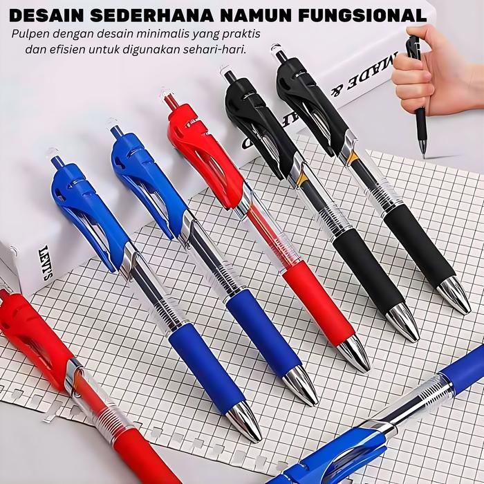12PCS Pulpen Gel Cetek 0.5mm Hitam Bolpoint Pen Tinta 1 BOX