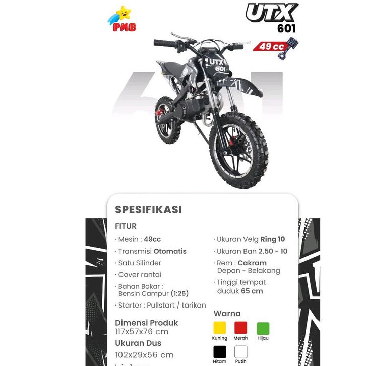Murah Motor Trail mini PMB UTX 601 49CC Motor Mini Bensin PMB Trail anak Elegan