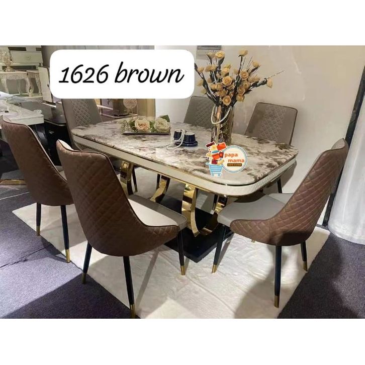 Murah Meja Makan Import Type -143 + 6Kursi fullset - Top Table Batu Marmer - Kaki Stainless steel 9old Keren