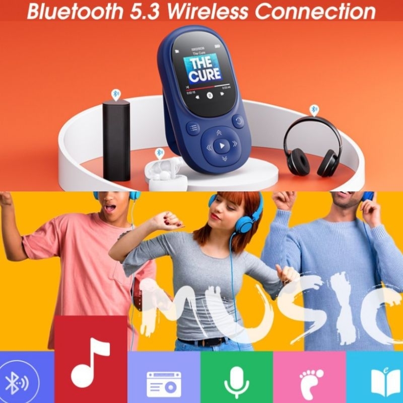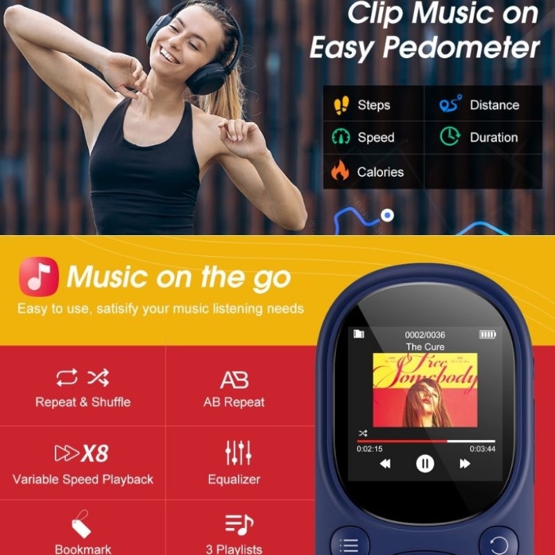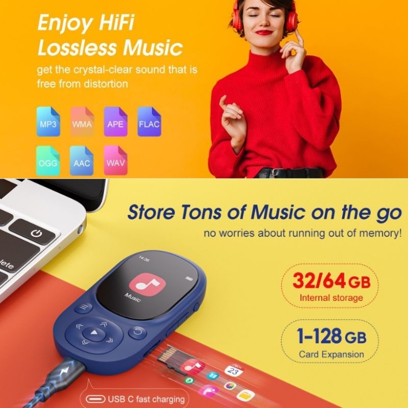Benjie A11 64gb Sport Clip Pedometer Type C no video mp3 player FM TFT Microsd Stopwatch TWS connect