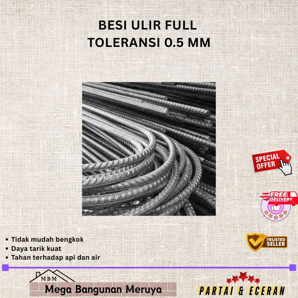 Besi Ulir 10 - 13 mm SNI Full Toleransi 0.5 mm