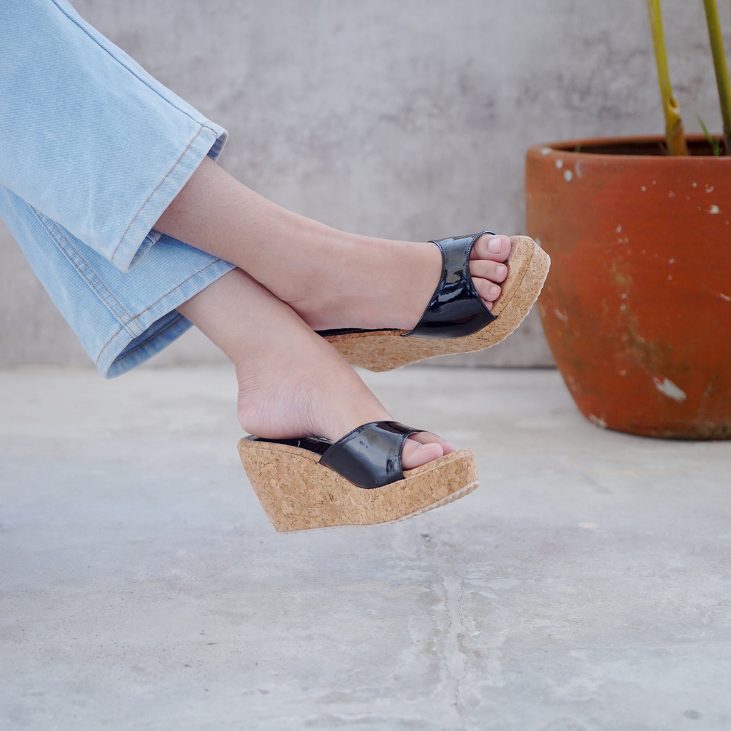 Sabiya Sendal Wedges Wanita Selop Polos HAGIA-02 Tinggi 7cm