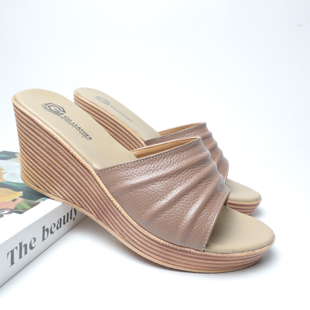 GOLEATHER Sandal Wedges Wanita - Sandal kulit hak 7cm
